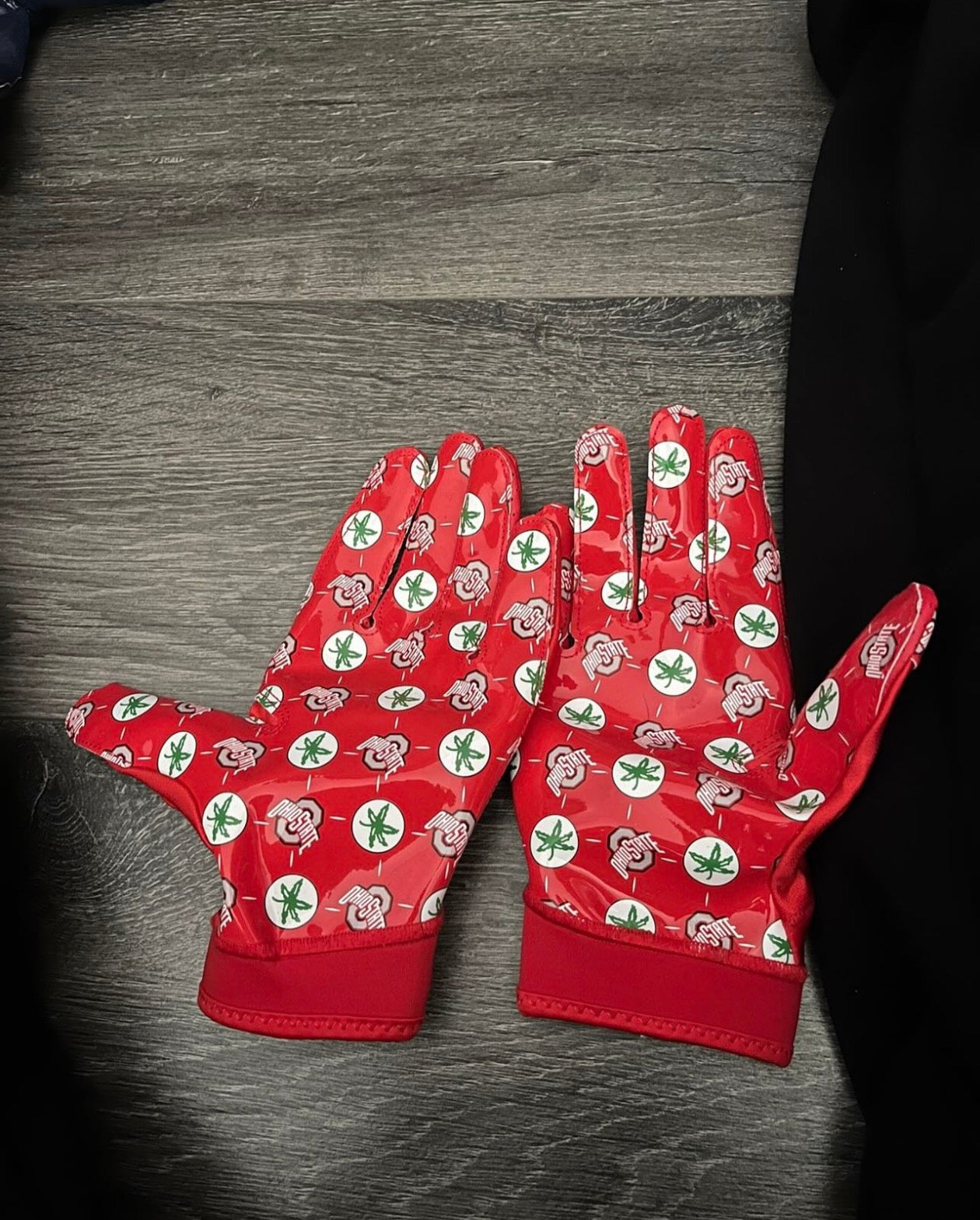 custom Nike Vapor Jet “Ohio State Buckeyes” Louis Vuitton-inspired Player Exclusive (PE) receiver gloves.